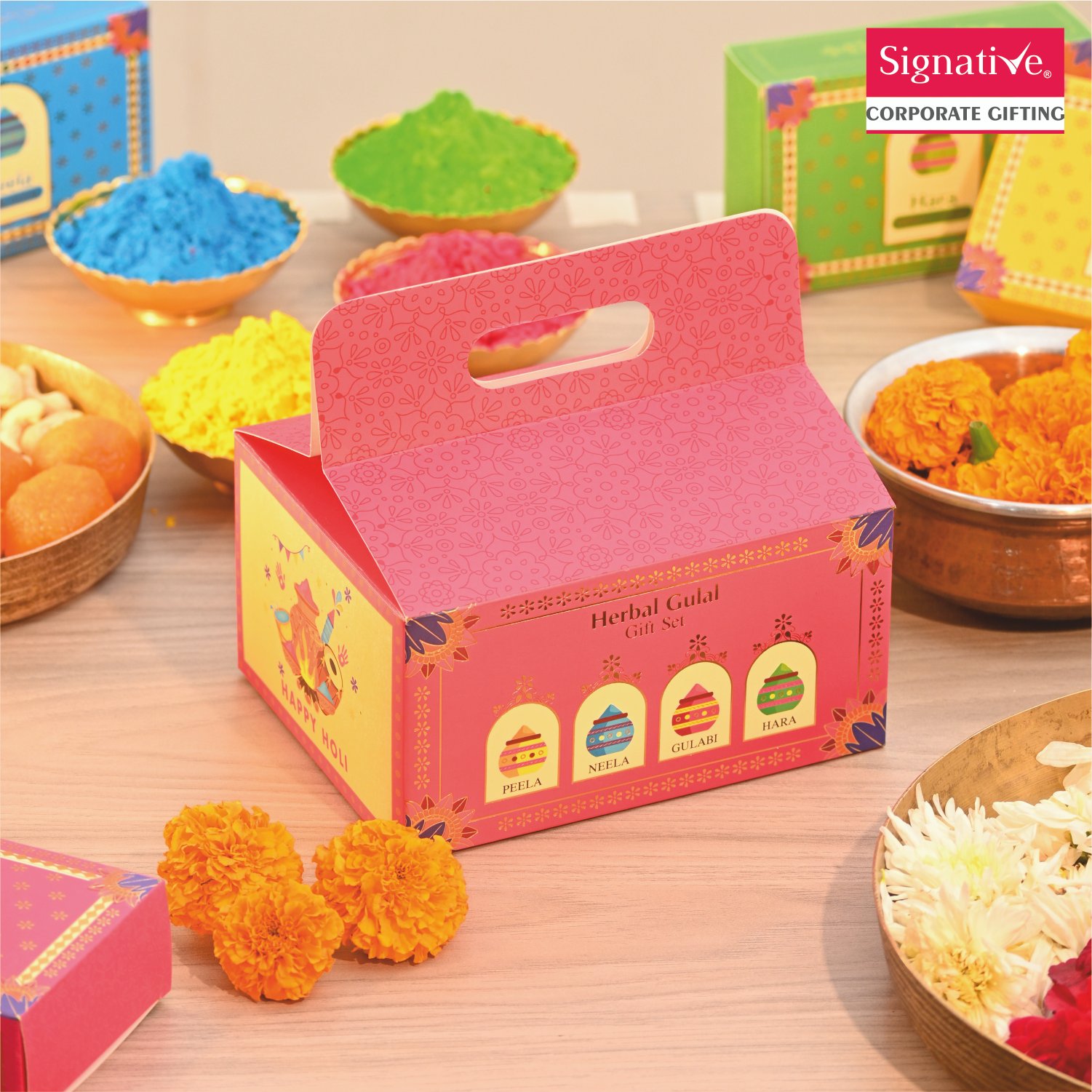 Celebrate the festival of colours with the exclusive Holi Hamper Box by Signative Shop. Thoughtfully curated with premium festive essentials, it’s perfect for corporate gifting and special celebrations. Elegant packaging and vibrant elements make it a memorable gift for clients and loved ones. Custom branding and bulk orders available. Let’s make this Holi colourful and unforgettable!